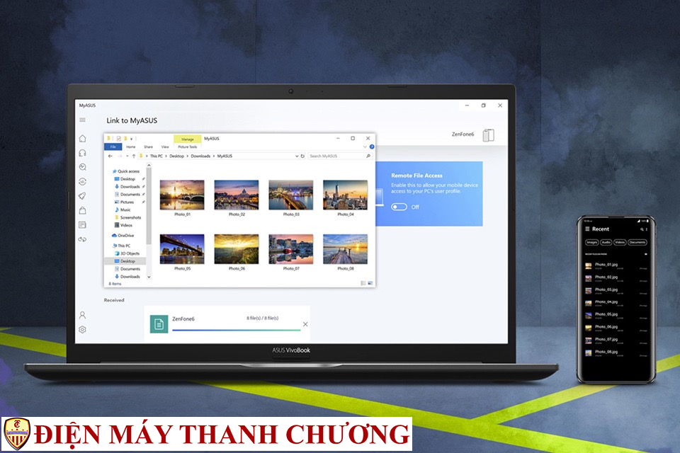 VivoBook A415EA được cài sẵn ứng dụng MyASUS cho phép máy kết nối nhanh chóng với smartphone để bạn tập trung làm việc liền mạch mà không lo bỏ lỡ những tin nhắn hay thông báo quan trọng.