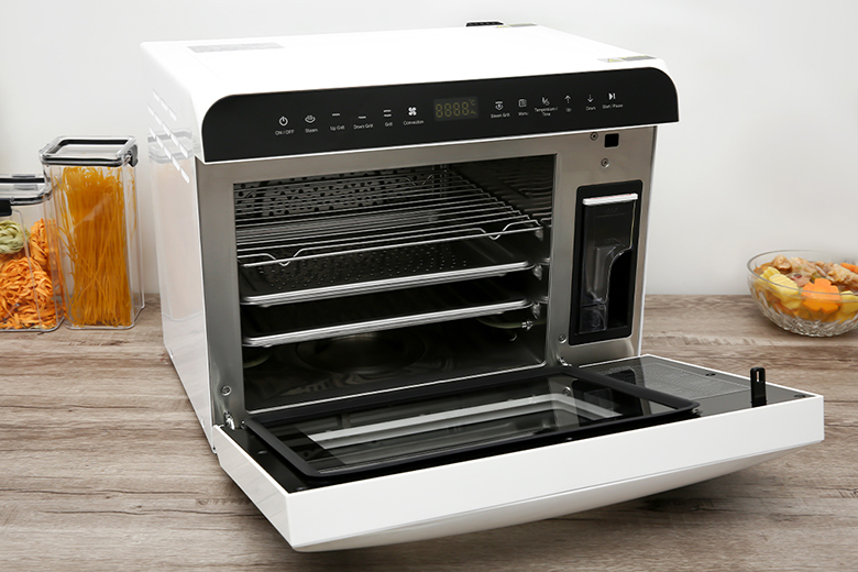 - Trang bị tính năng tiệt trùng bằng hơi nước, khử mùi và tẩy dầu mỡ, hỗ trợ người dùng chùi rửa lò thuận tiện hơn.