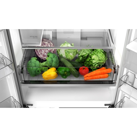 - Ngăn rau củ Fresh Safe bảo quản rau củ tươi ngon lâu hơn nhờ trang bị bộ lọc kiểm soát độ ẩm lên đến 90%.
