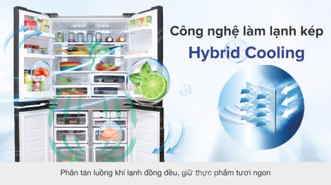 Hệ thống làm lạnh kép của tủ lạnh Sharp 556 lít SJ-FX630V-ST sẽ mang đến luồng gió lạnh đồng đều tận các góc trong tủ lạnh, giúp ngăn chặn sự mất nước của thực phẩm, đảm bảo thực phẩm luôn được tươi ngon.