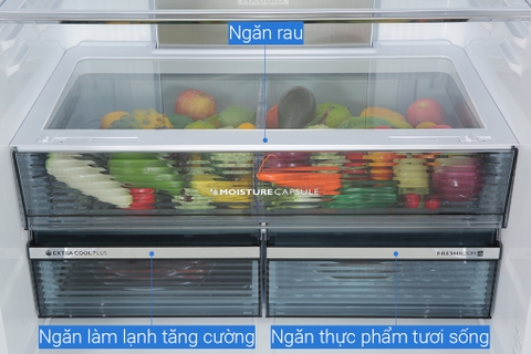 Ngăn rau quả giữ ẩm Chế độ làm đông nhanh đă nhiệt độ ngăn đông xuống -24 độ C Ngăn làm lạnh tăng cường -1.5 độ C (Extra Cool Plus) |